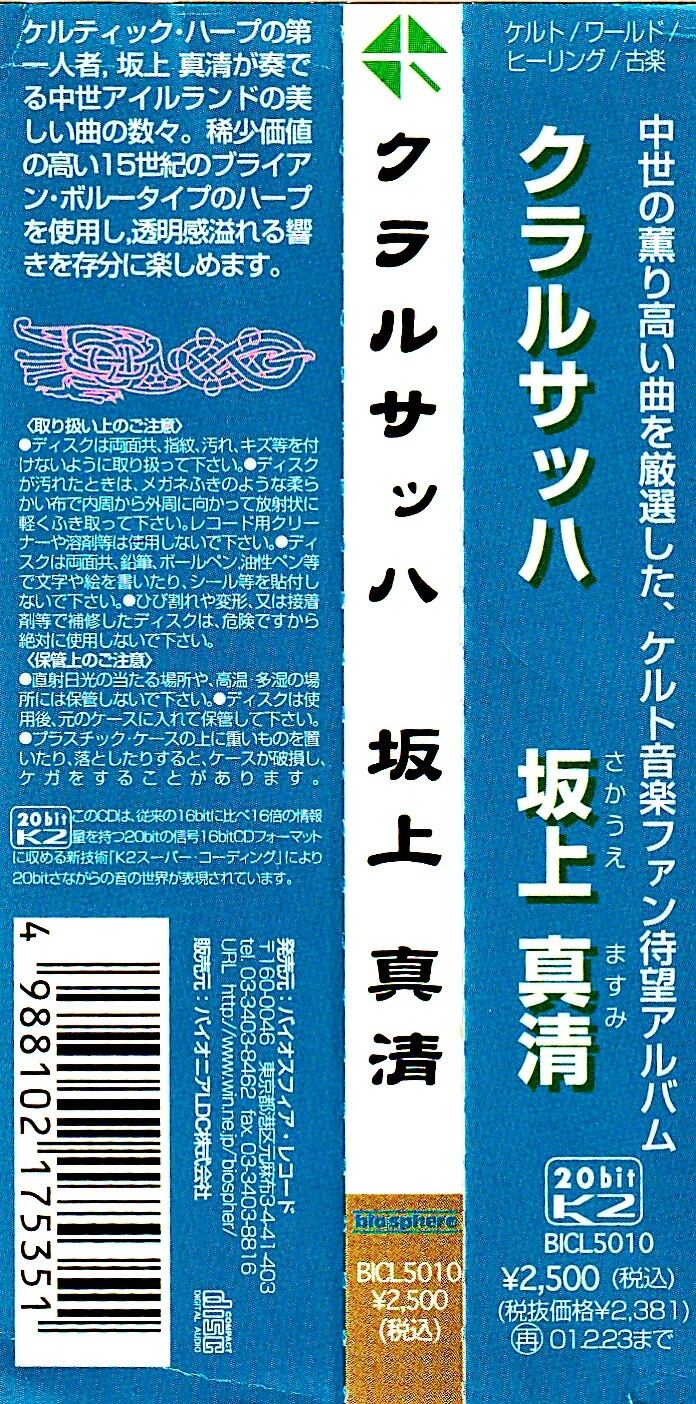 ケルトの伝統的な金属弦ケルティックハープ奏者「坂上真清」1stソロアルバム。アイルランドのハープ音楽収集家エドワードバンティングがすでに数少なくなっていたハープ奏者を訪ねて曲を採集し出版した楽譜集から18世紀以前ハーパー達によって奏でられていた曲
